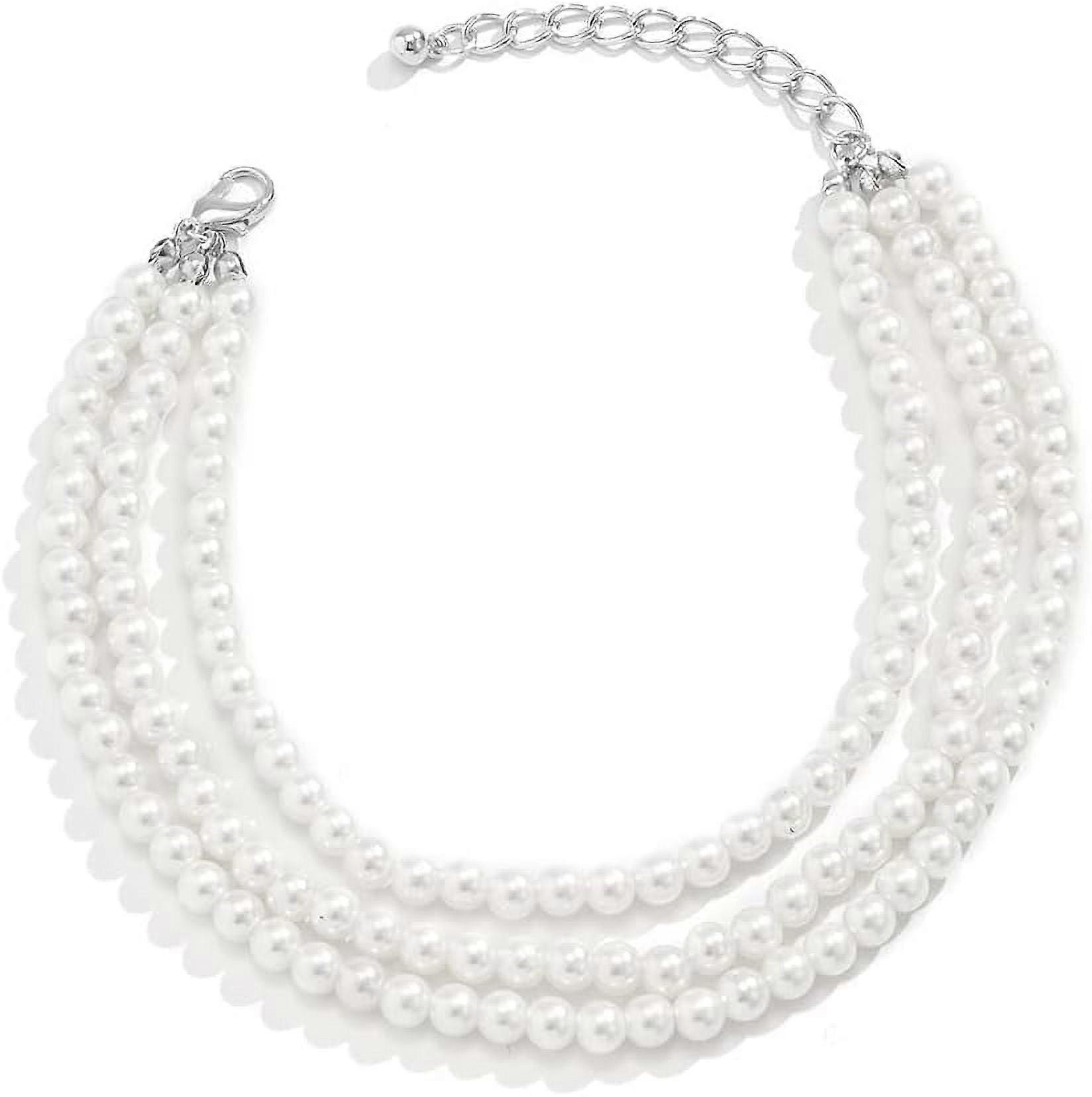 NANAHuang Lightweight Bohemian Imitation Pearls Adjustable Anklet Bracelet, Summer Beach Elegant Dainty Layered Boho Foot Jewelry for Women