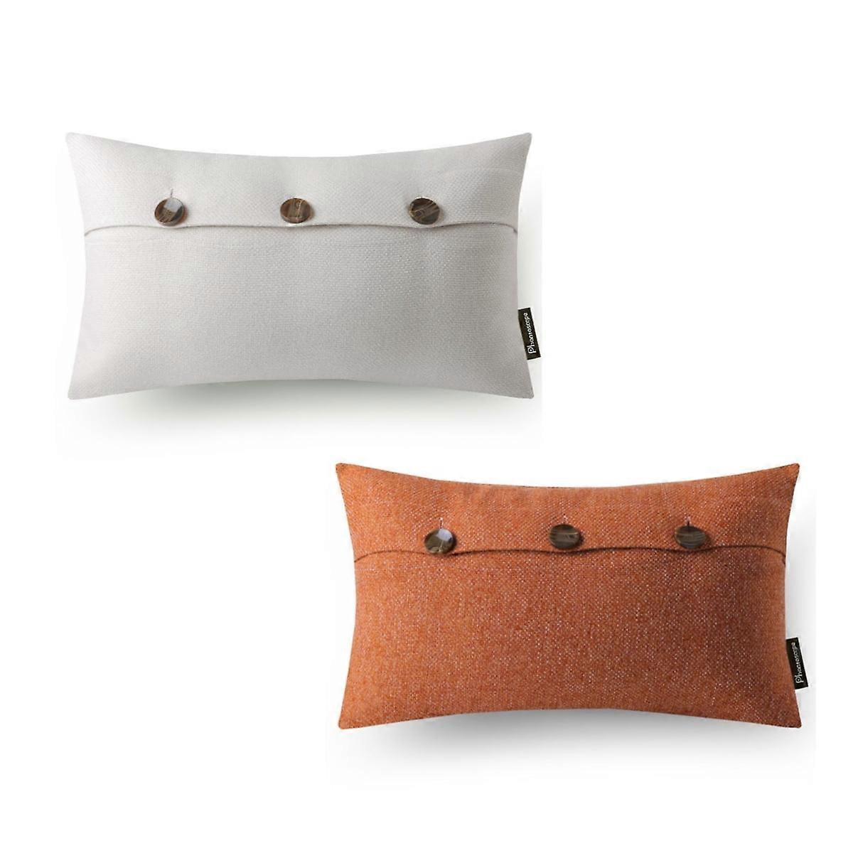 Phantoscope Halloween holiday Triple Buttons Cotton Blend Series Decorative Throw Pillow Covers, 12" x 20", Orange and White, 2 Pack
