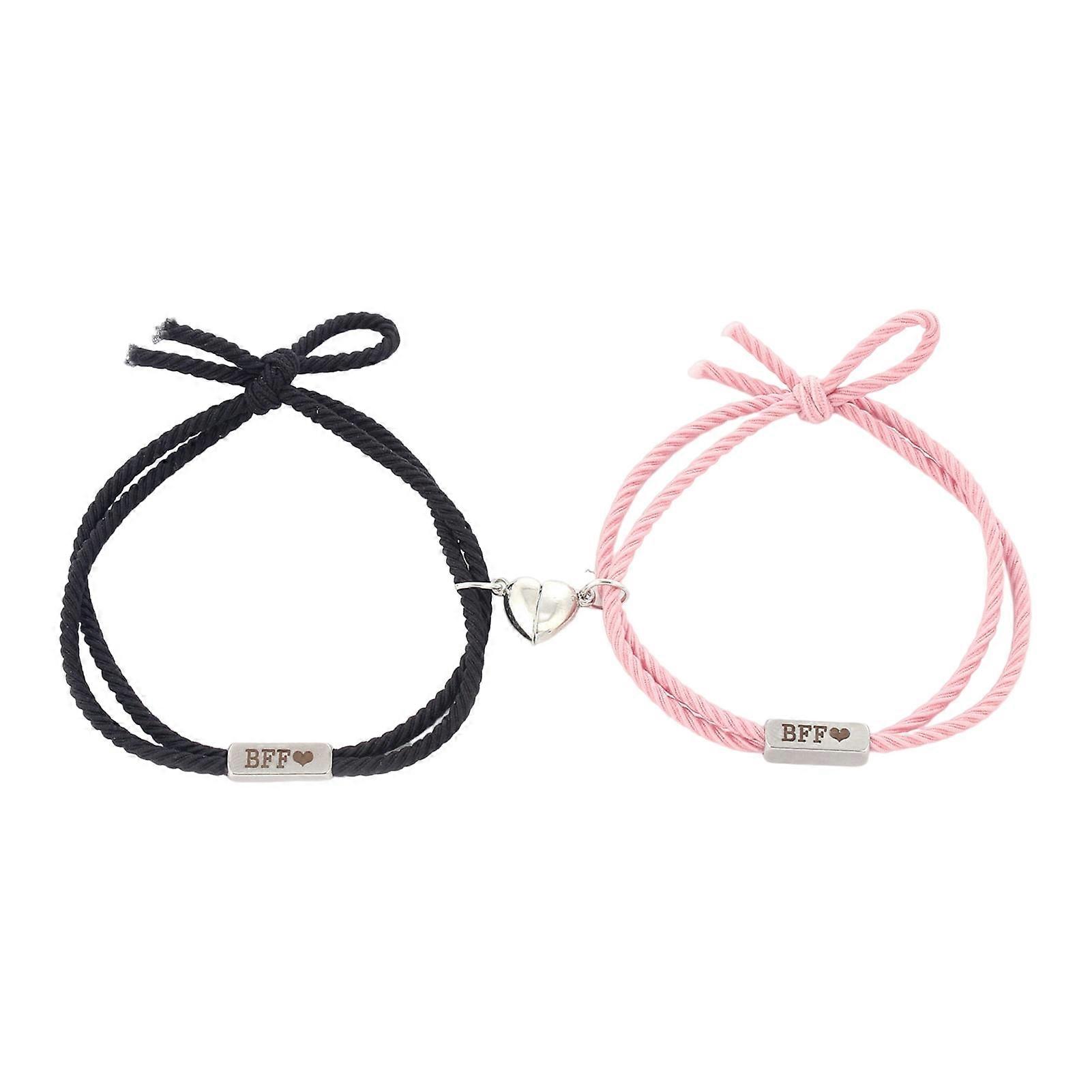 Kripyery 1 Pair Magnetic Bracelet, Heart-shaped BFF Letter Print, Adjustable Knotted Rope, Compatible with Couple Jewelry Gift for Men Women