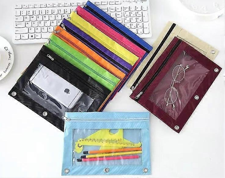 Janrevotw Oxford Cloth Pen Bag Three Holes Zip Stationery Storage Bag Simple Large Capacity Learning Utensils