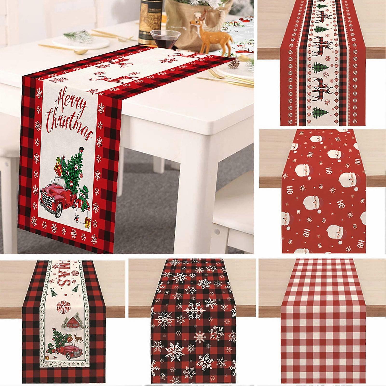 Christmas Table Runner 72x12.9" - Black Red Plaid & Trees Pattern, Thick Durable Fabric for Holiday Dining Decor