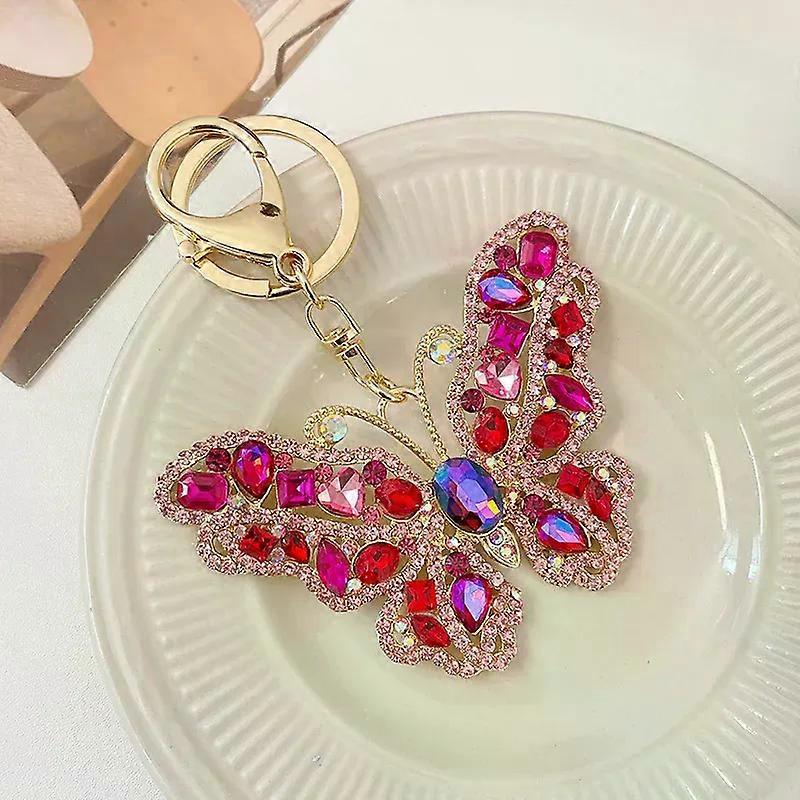 1pc Rhinestone Butterfly Keychain Cute Hollow Metal Key Ring Purse Bag Backpack Car Charm Earphone Accessory Gift For Mom