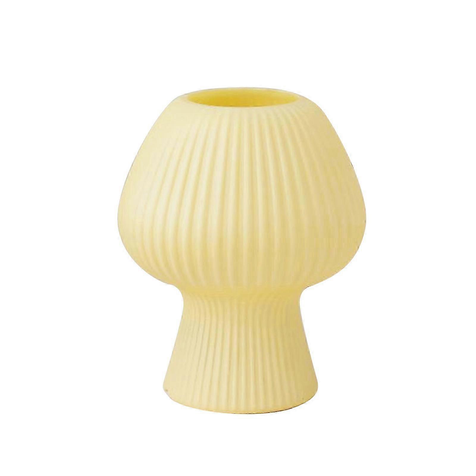 Glass Mushroom Translucent Vintage Style Striped Small Nightstand Night Light for Home Decor--Yellow