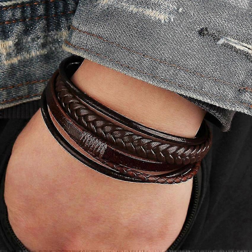 Genuine Leather Bracelet for Men Multilayer Braided Rope Trendy Design