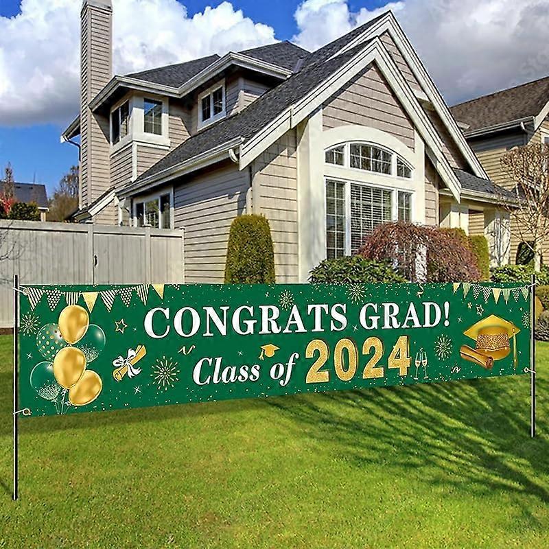 2024 Graduation Decorations - Green & Gold Banner, Yard Sign, Backdrop for Indoor/Outdoor Party Supplies