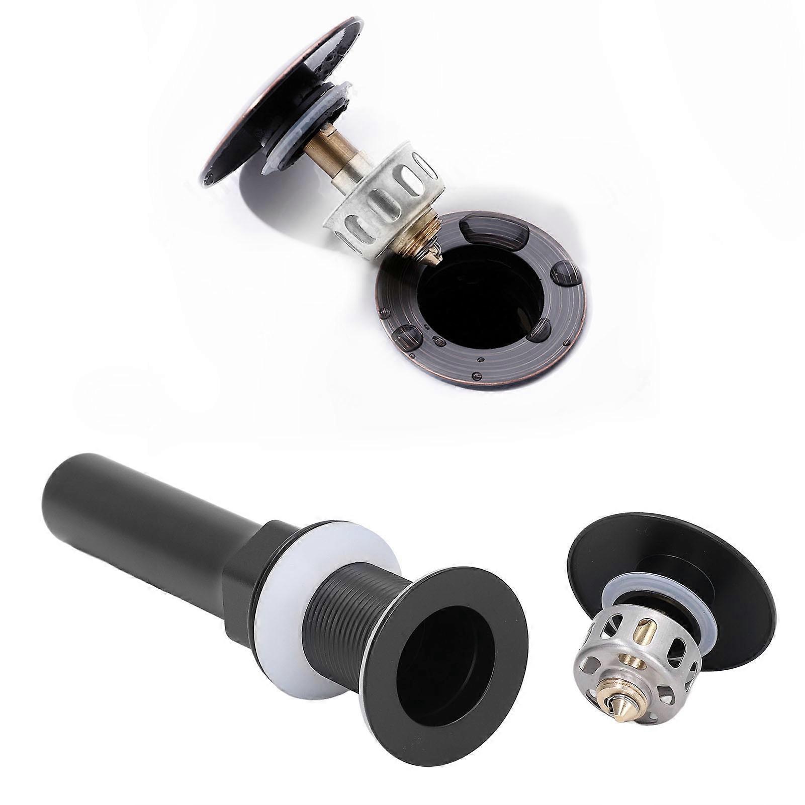 Round Popup Sink Drain Copper Stainless Steel Drain Stopper with Filter Basket Bathroom Accessory for Household Item Type: Sink Drain Color: Matte black Material: Stainless steel + copper Type: Popup, No Overflow Hole Bounce Elements Material: Brass Weight: Approx. 428g / 15.1oz
