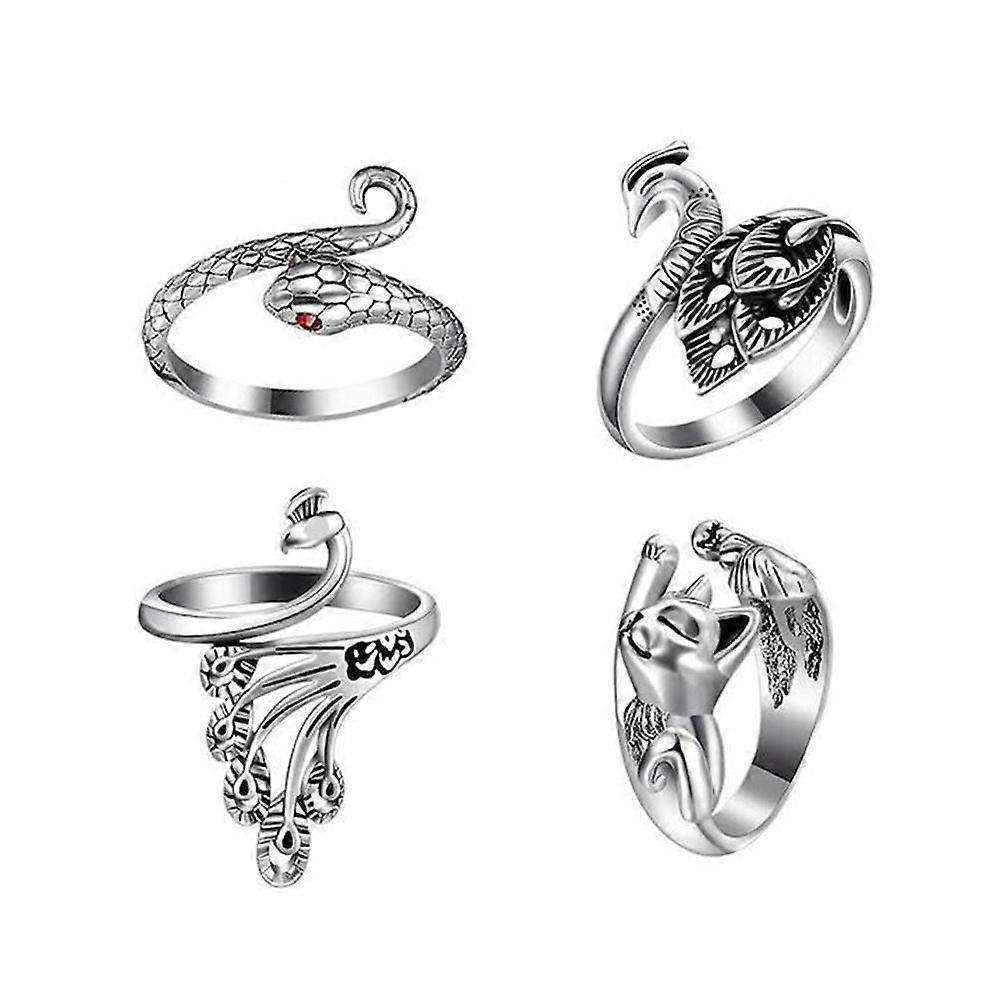 EIGTHTAIL 4 Pack Adjustable Crochet Yarn Tension Ring for Crocheting Crochet Ring for Finger Peacock Cat Crochet Knitting Rings for Tension