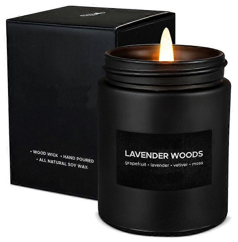 MASCULINE ELEGANCE: Immerse yourself in the magical allure of our scented candles crafted specifically for men. Designed to capture the essence of the season and the cozy warmth of masculine charm, these candles are an irresistible delight. Perfect for those who savor luxury and the comforting scents of the season, each gift comes in captivating, ready-to-give packaging. Elevate your gift-giving experience with this thoughtful and unforgettable present for any man deserving of a touch of elegance. PREMIUM SUMMER SOY CANDLE: These 100% natural soy wax, wood wick candles are safe to use and long-burning. This Lavender Woods aromatherapy candle for home is made with essential oils that bring a strong masculine fragrance perfect for creating a relaxing summer atmosphere in your space.CANDLE FOR MEN: Have you looked for a candle for men for a long time? Weve designed the perfect one for you and your loved ones. It comes with a strong masculine scent and a stylish black design. LONG LASTING SCENT: This 7.6 oz scented candle will bring in the masculine notes of grapefruit, lavender, vetiver, and moss to your home. Enjoy this luxury candle made with the finest essential oils to bring you a lasting and strong scent.