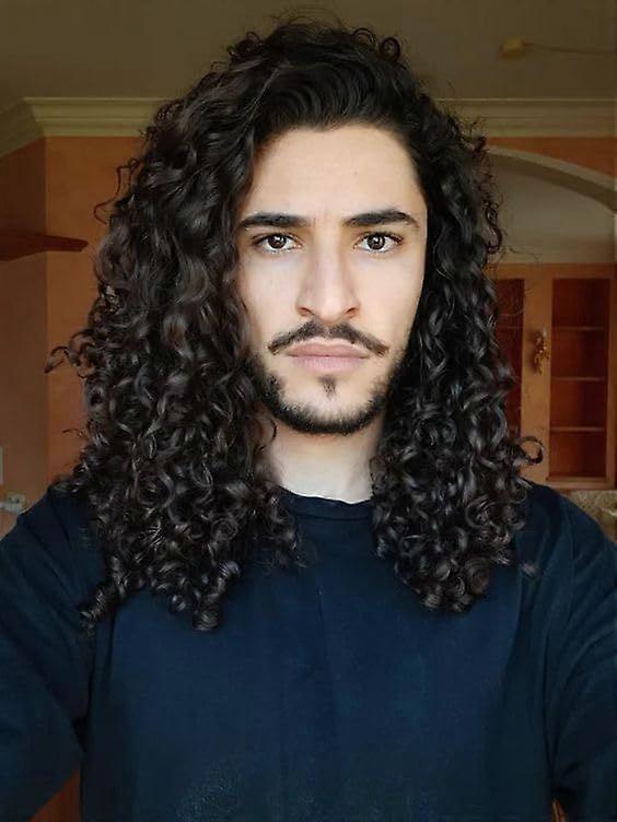 Men Wigs Long Black Curly Wig Natural Curly Black