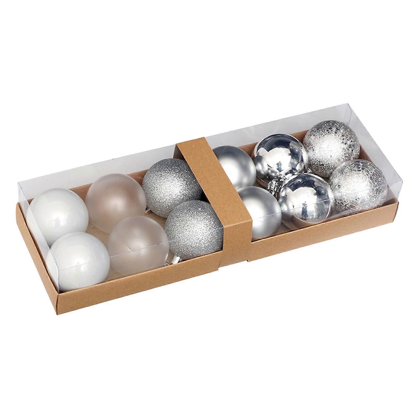 BSJJY 12Pc 6 Style Fine painting Christmas Balls,2.4In Christmas Tree Hanging Ball,Shatterproof Christmas Baubles(Boxed),Silver