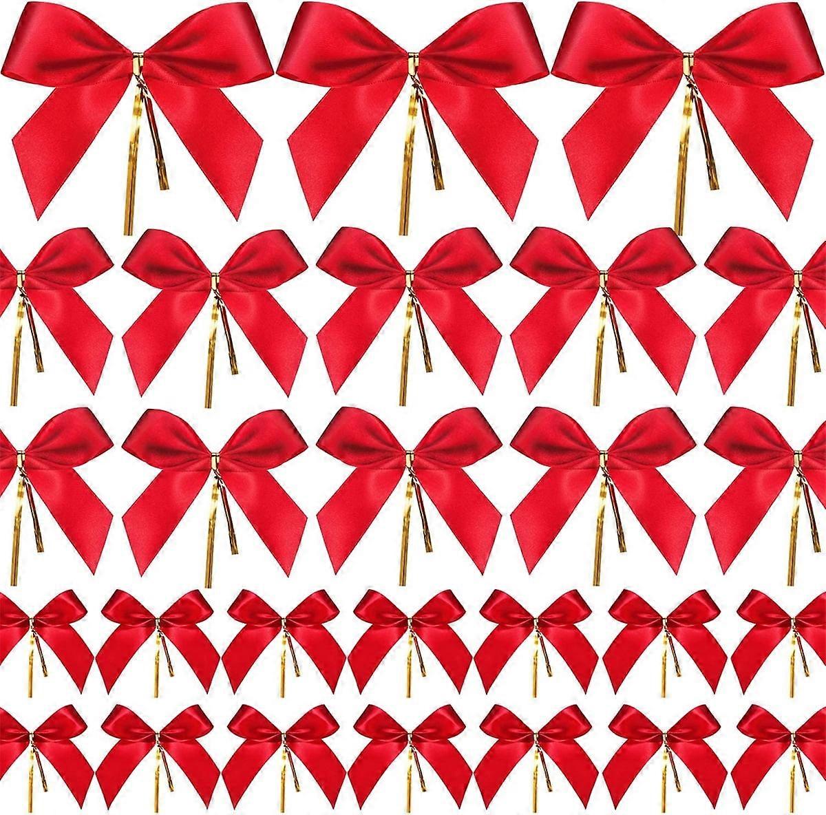 Casewin Christmas Red Bow Ribbon Outdoor Bow for Christmas Tree, Small Christmas Wreath, Gift Decoration (Red, Size L, 48 Pieces)