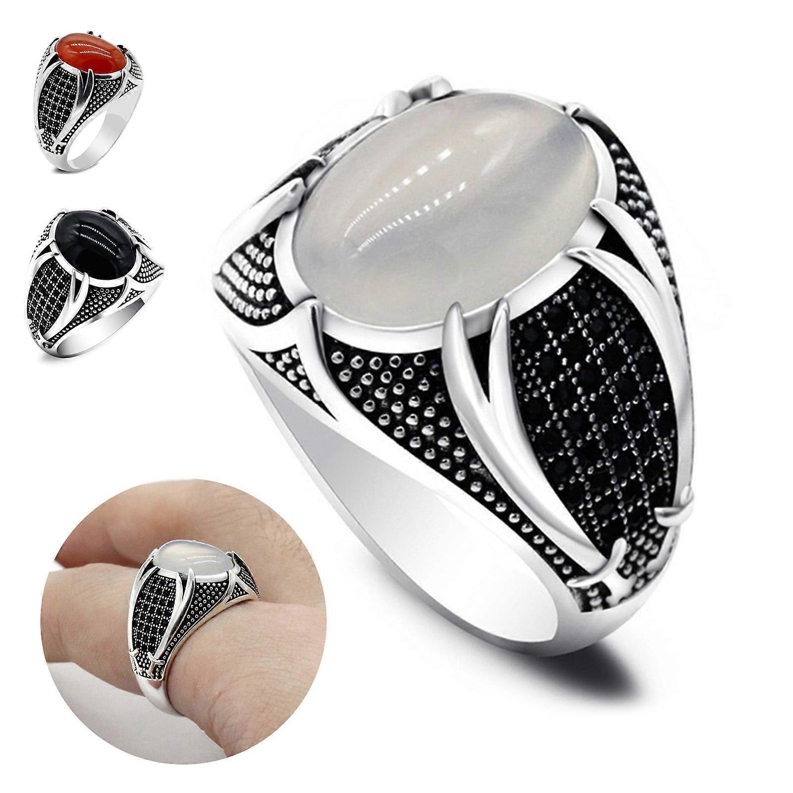 Meidiya Retro Men's Ring, Oval White Zircon Gem Rhinestone Inlaid Alloy Vintage Double Swords Turkish Ring Wedding Band Jewelry Gift (White)
