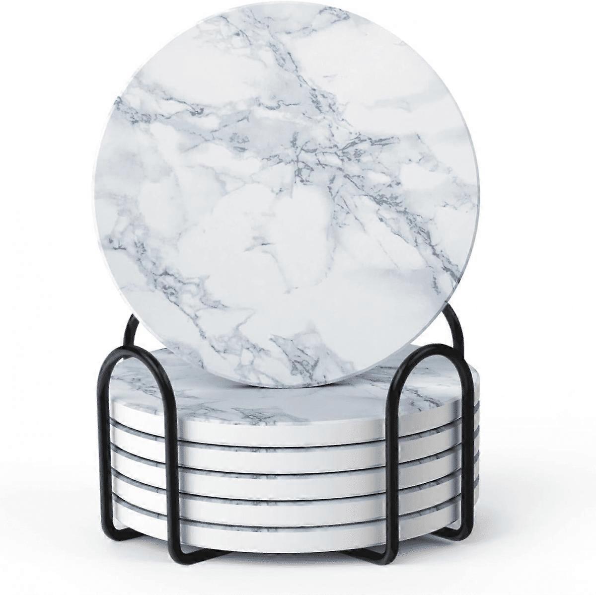 Absorbent Ceramic Coasters Set of 6 with Cork Base, Grey - Protects Furniture, Includes Holder - Living Room Decor