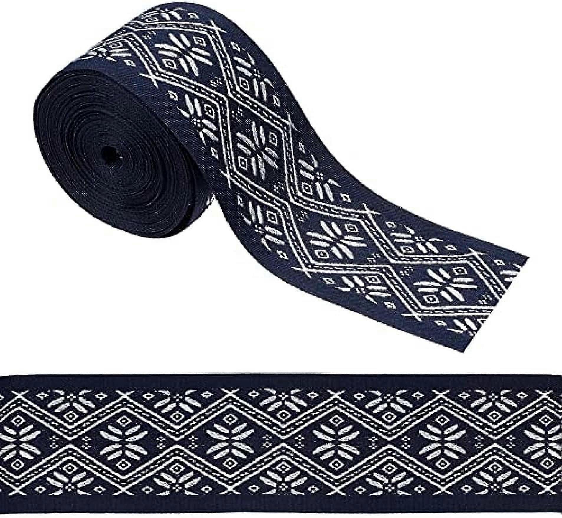 length enough for embellishing and beautifying DIY patchwork fabric projects. QUALITY MATERIAL: The ribbon are made of high quality of polyester with bright color, tightly be woven and smooth workmanship. It can be machine washable, not easy to fade, strong and durable for long time use. ETHNIC STYLE DESIGN: The embroidery polyester ribbon is designed with vintage ethnic style of flowers and rhombus pattern, combining it with your daily dressing, full of retro beauty, with wired edge design, easy to roll up and convenient to use. SUITABLE SIZE: Comes with 1 roll vintage jacquard ribbon, about 1.89 inch(48mm) wide, 0.02 inch(0.5mm) thick, 5 yards long, length enough for embellishing and beautifying DIY patchwork fabric projects. DIY DECORATION RIBBONS: The vintage jacquard ribbon can be used for making mini top hats, hair bands, pillow case edging, bows wreaths, dresses, bag strap, towels, curtain, handmade DIY, hair accessories, gift wrapping, costume making, etc. WIDE APPLICATIONS: Perfect for home decor accessories, suitable for decorating wedding celebration, festival party, birthday party, garment design, home decoration, etc, also can be a sweets gift for your family members, friends.