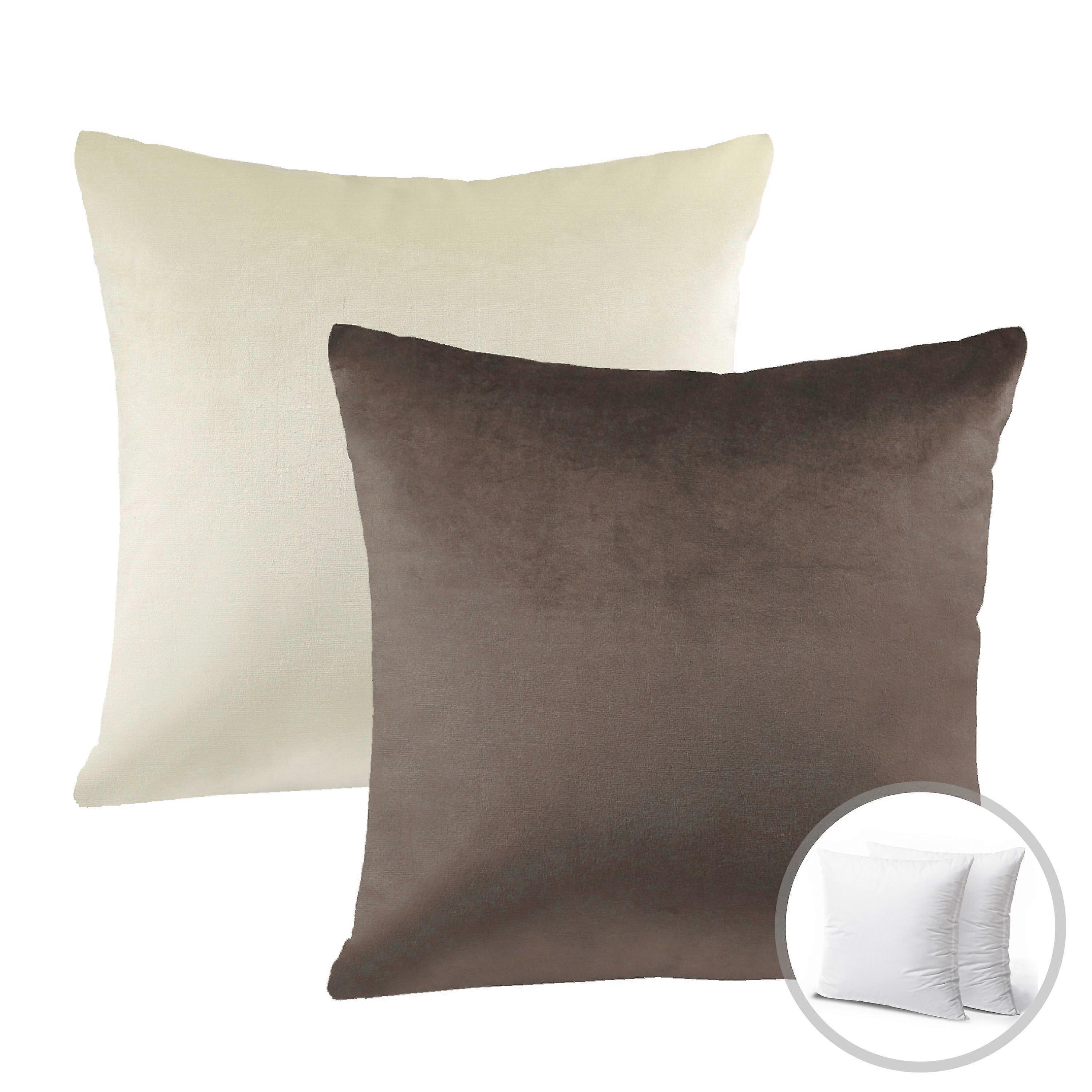 Phantoscope Christmas holiday Decorative Throw Pillow Set, Silky Velvet Series Covers with inserts, 20" x 20", Dark Coffee and Off White, 2 Pack