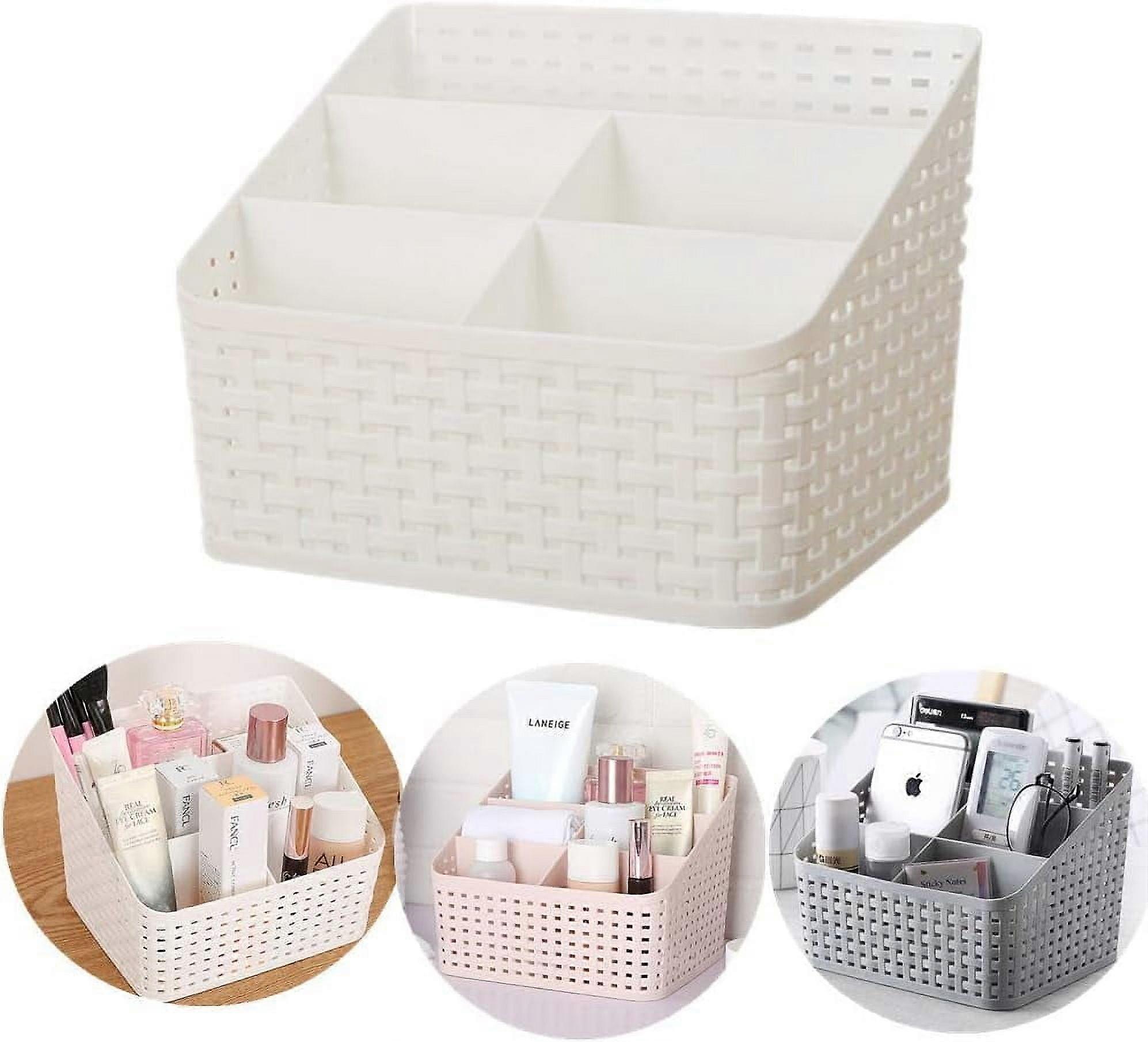 Plastic Desk Organizer, 5 Compartments Storage Organizer Utility Tote Caddy Holder Desktop Container Dividers for Home School Office Supplies (White)
