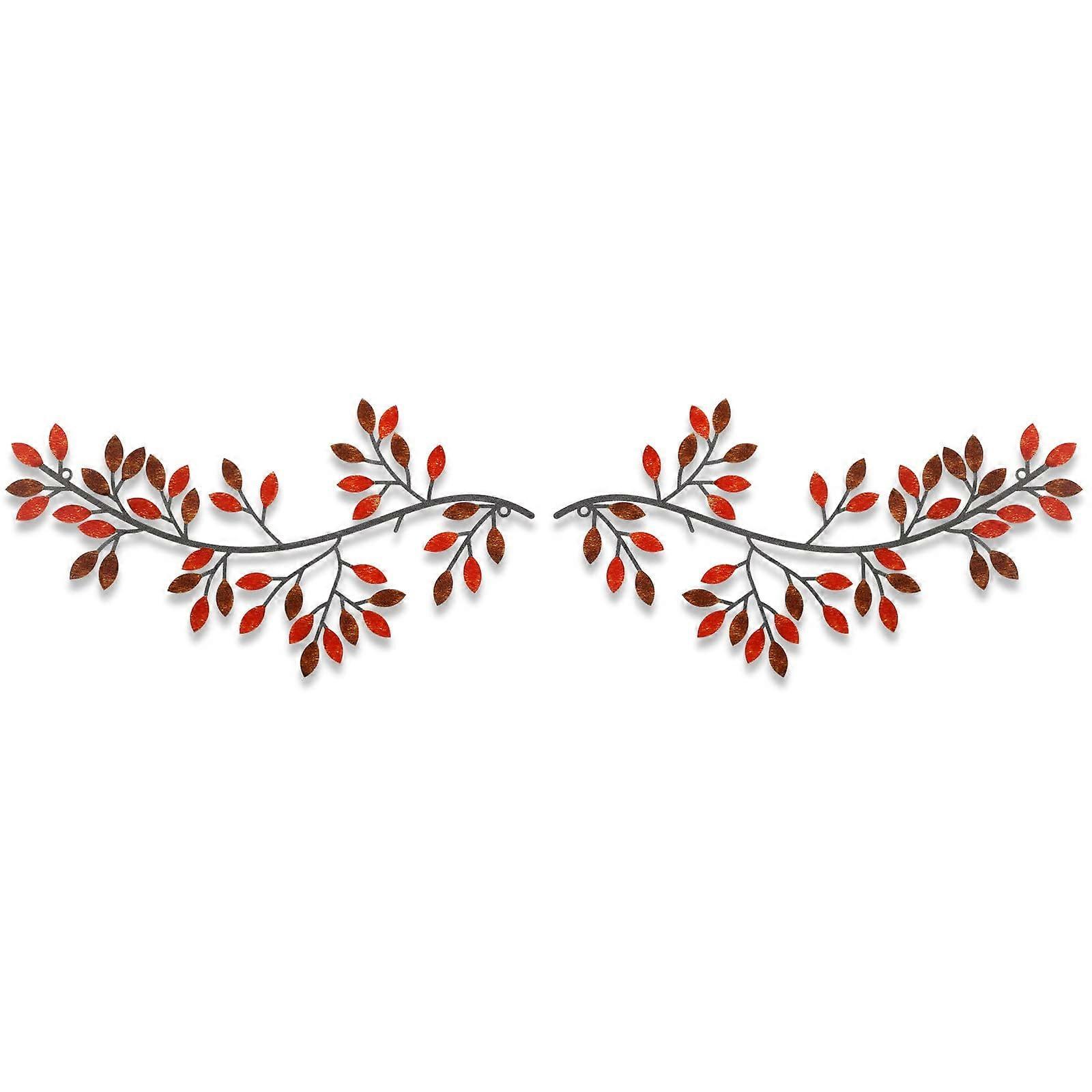 2Pcs Metal Tree Leaf Wall Decor, Vintage Vine Olive Branch Art, Wrought Iron Scroll Sculptures for Living Room, Bedroom, Outdoor