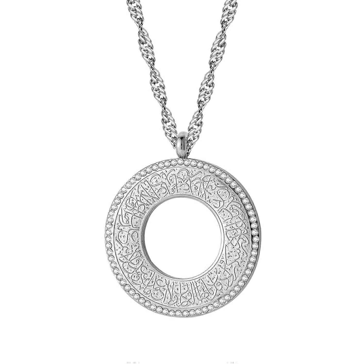 Qitian Islamic Jewelry Gifts STF9 Women's Muslim Pendant Gold Allah Arabic Necklace Ayatul Kursi Ramadan Gift (Silver-Hollow with CZ)
