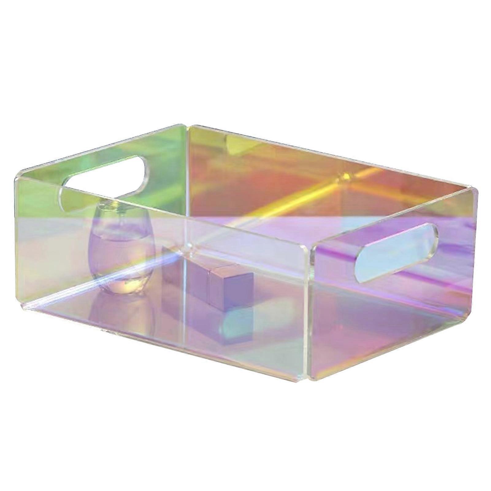 Chicmine Iridescent Acrylic Storage Box with Hollow Handle, Heavy Duty, Large Capacity Desktop Organizer Compatible with Makeup, Tissues