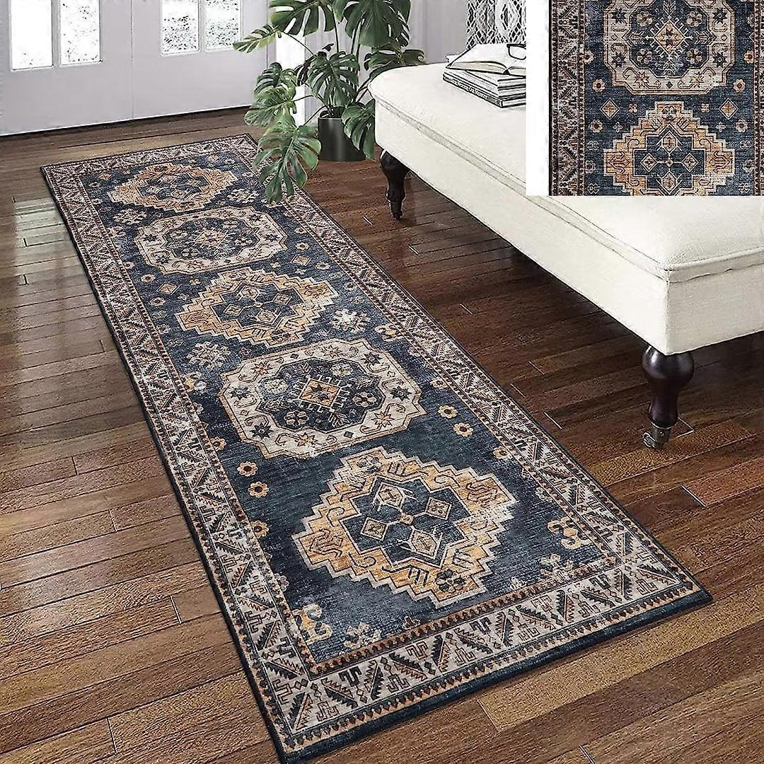 Haperlare 2x6 ft Ink Blue Hallway Runner Rug, Machine Washable Kitchen Mat, Compatible with Vintage Persian Area Rugs for Bedroom, Living Room