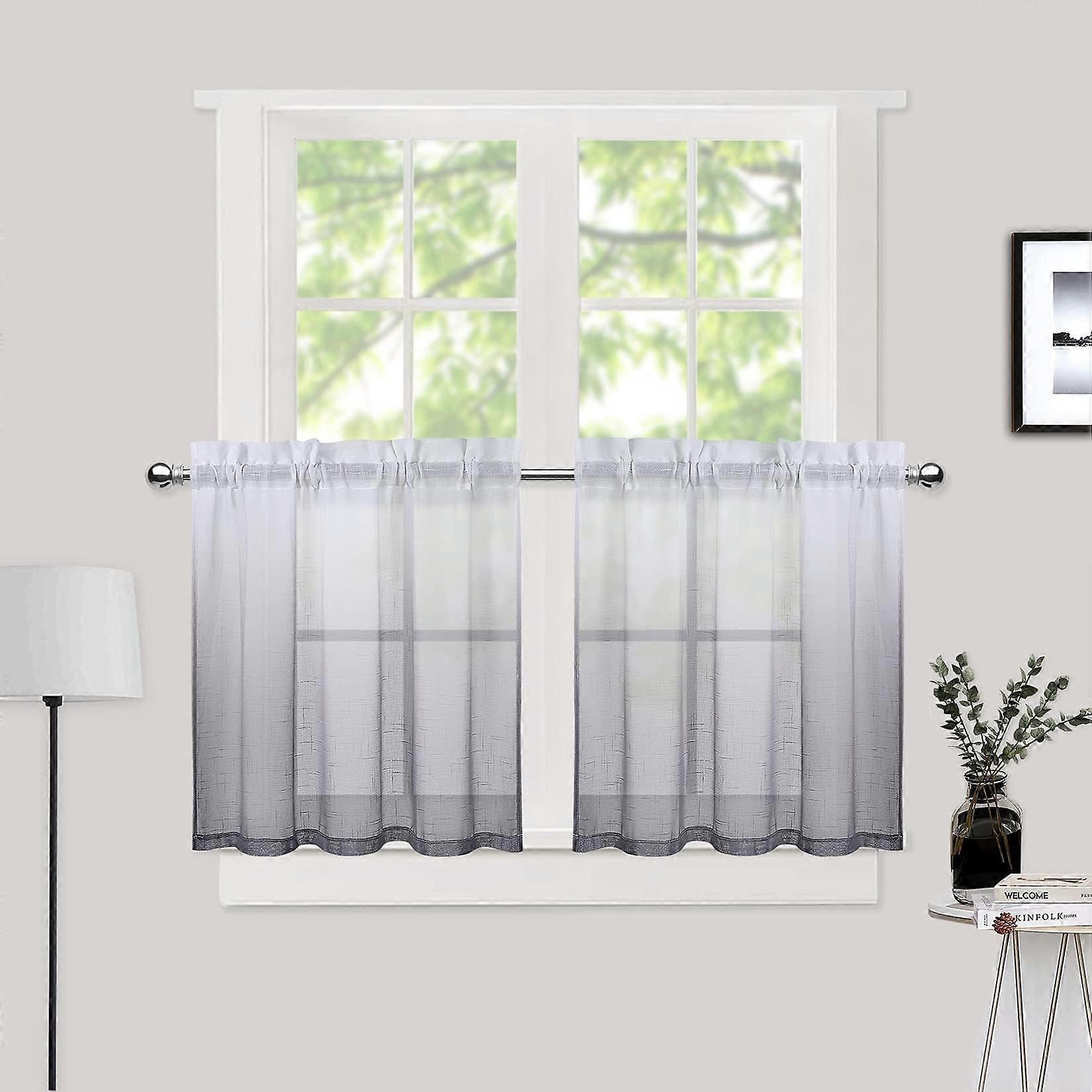 Kitchen Curtain Faux Linen Sheer Curtains Voile 24 inch Length Rod Pocket Small Half Window Treatment Set Short Tier Cafe Curtain, Burgundy, Set of 2