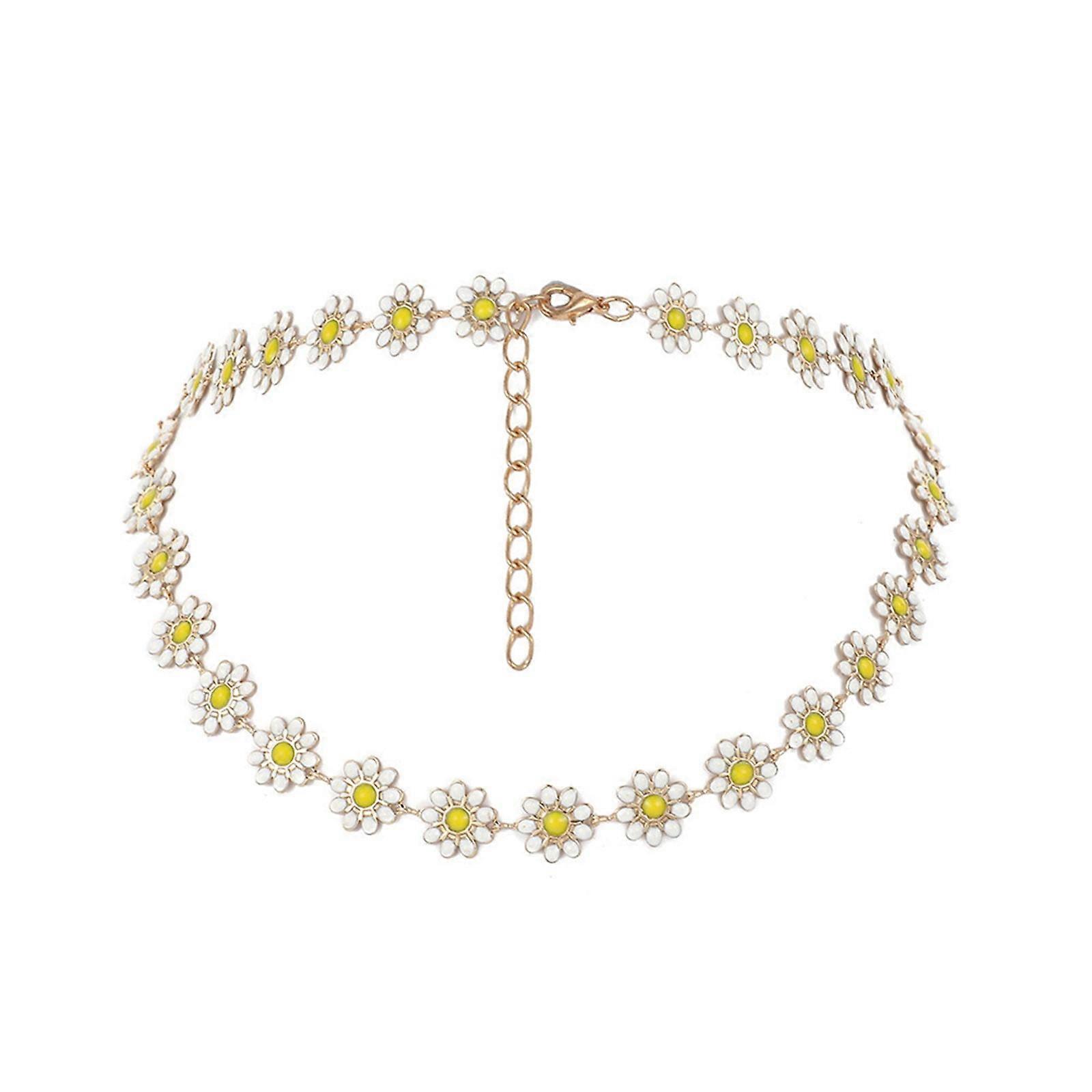 ZHENYANGli Creative Little Daisy Clavicle Chain Necklace Women's Simple Temperament Painted Necklace Flower Necklace