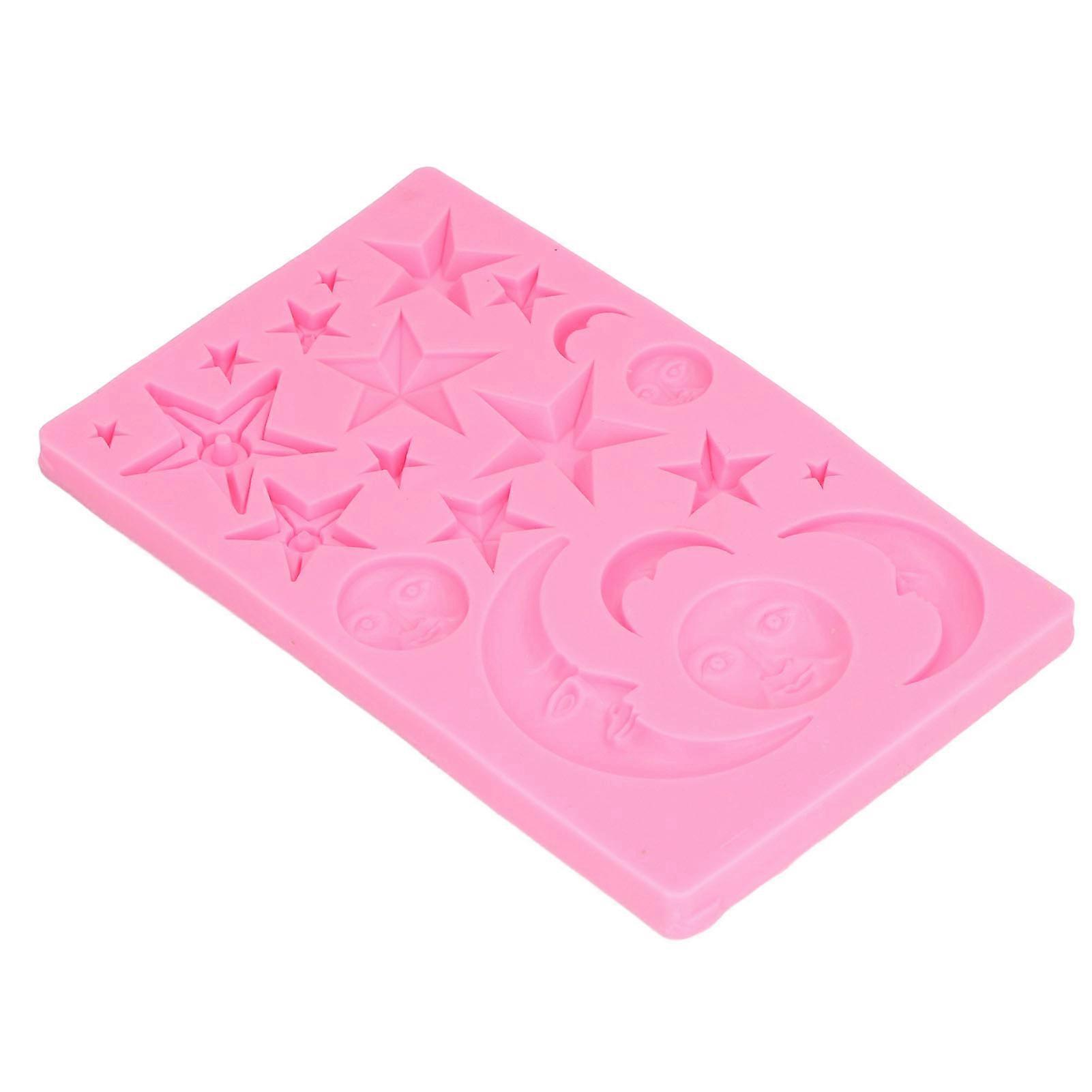 Silicone Sun Moon Star Cake Fondant Mold 18.6x11.7x1.1cm Pink