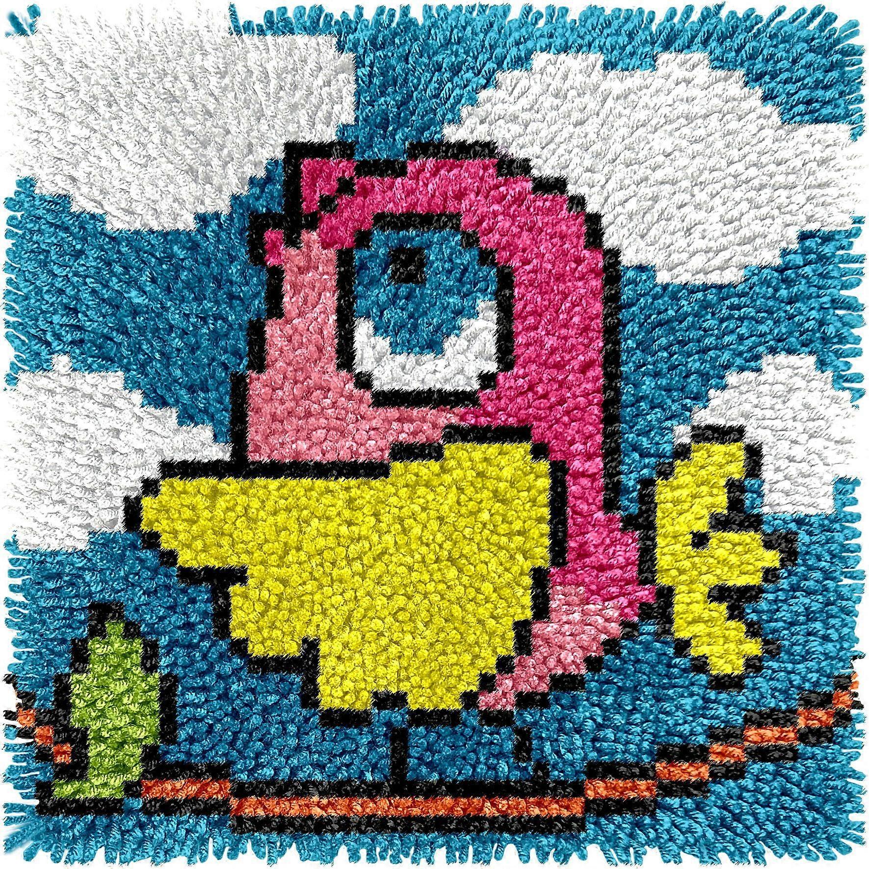 Latch Hook Kits Rug Animal - Compatible with Crochet Yarn Cushion, Pre-Printed Canvas 30x30cm, DIY Needlework Home Decor