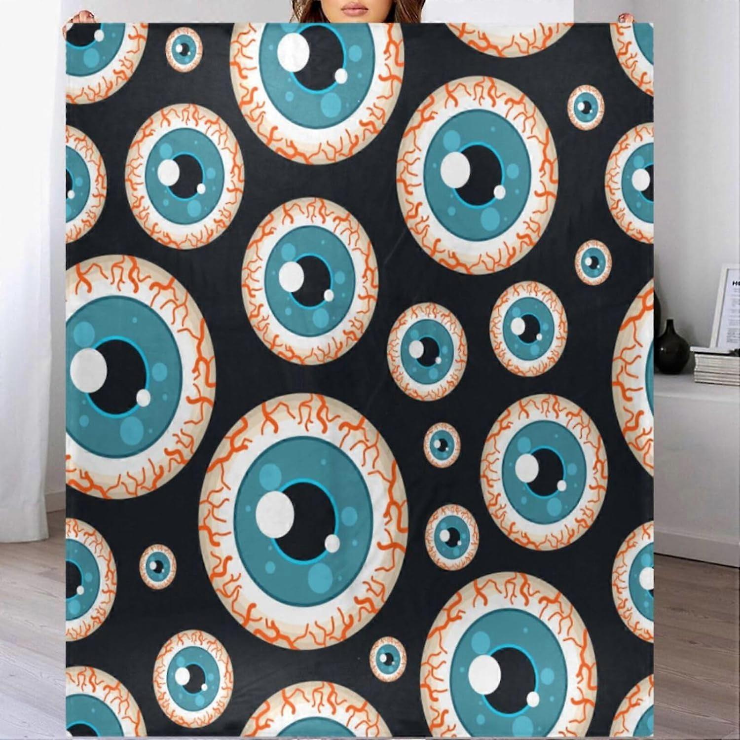 Throw Blanket for Couch 50x60 Inches, Creepy Blue Eyeballs Soft Cozy Flannel Fleece, Happy Halloween Lightweight Warm Fuzzy Blanket Compatible with