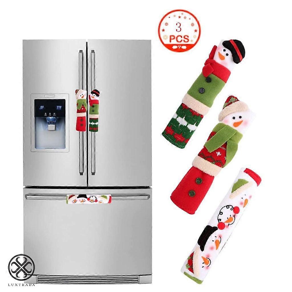 Luxtrada Christmas Refrigerator Handle Covers Set of 3, 3D Cute Snowman Fridge Door Cover for Kitchen Decor