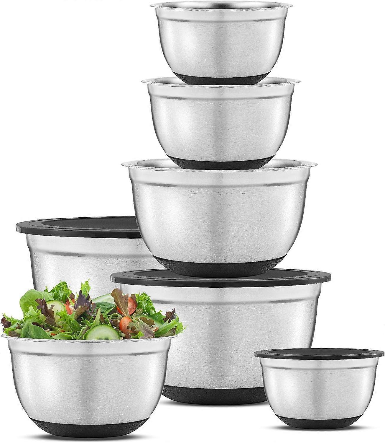 7-Pc Stainless Steel Mixing Bowls Set with Airtight Lids, Non-Slip Bottoms, Measurement Marks, Nesting Kitchen Bowls 7/5/4/3/1.5/1/.75QT, Black