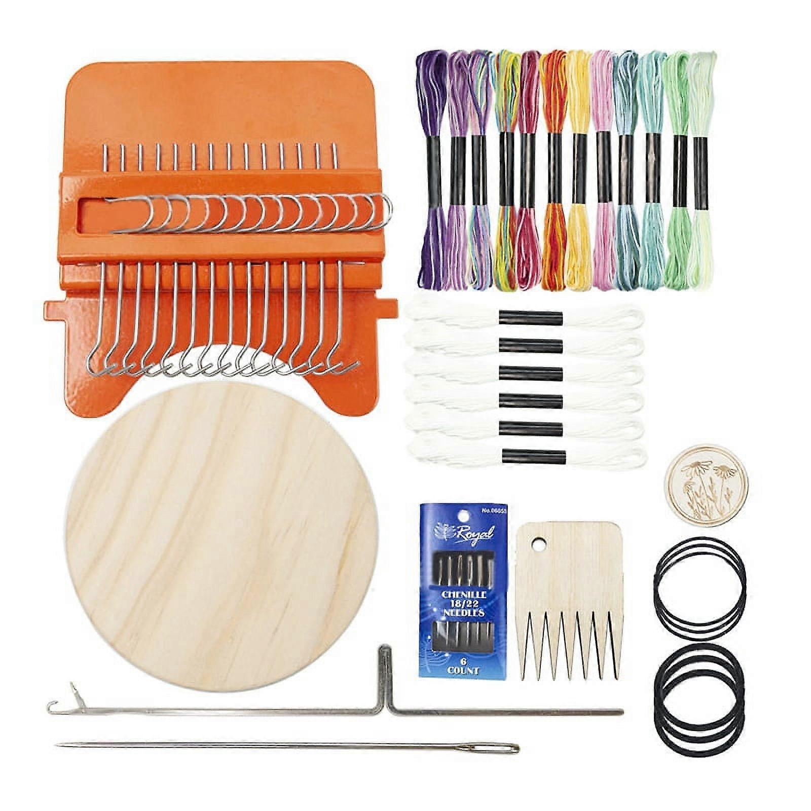 Material: Wood+Plastic colour: As Shown Package Contents: 1 set patch tool(The style is as shown in the picture, the needle aspirator pattern randomly, Cannot be chosen the specific pattern.) Only the above package content, other products are not included. Note: Light reflection and different displays may cause the color of the item in the picture a little different from the real thing. The measurement allowed error is +/- 1-3cm. [Wooden Darning Mini ]14 hooks darning equipped with a small round flat plate, and smooth edges to the flatness of the weave. Apply to mending socks, jeans, sweaters, handkerchiefs, scarves and other clothing [Easy to Use] Just stretch the fabric over the tool, use the rubber bands to fix the fabric and in place, set up your warps and get weaving, the small mending can make your sewing more simple and convenient [Complete Supporting Accessories]DThe necessary accessories for sewing are fully provided. [Cute and Practical Weaving Comb]weaving comb with a comfortable grip. Assist you in effectively adjusting the embroidery thread spacing, to that the embroidery thread is tight and orderly. Suitable for a variety of crafts to create personalized patterns [ for Weaving Lovers] The knitting improve hand-eye coordination and concentration, it is a good choice as a gift for friends, family and knitting lovers, they will be amazed by this cute little tool