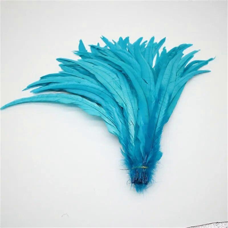 Beatiful 50pcs Natural Cock Tail Feathers 25-40cm / 10-16inch Clothing Decoration Stage Performance Rooster Tail Feathers Plume Sky blue 35-40cm