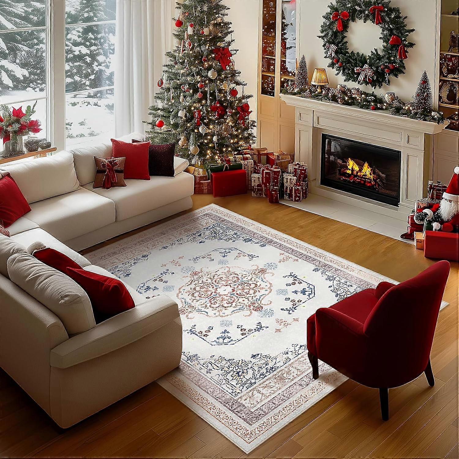 Vintage Boho Area Rugs for Living Room, Machine Washable with Non-Slip Backing, Indoor Light Brown Rug, 3 x 5 ft, 1 Pack