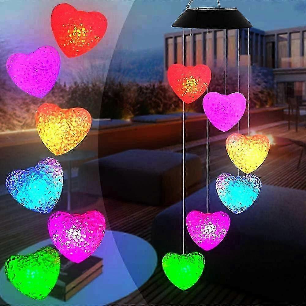 Solar-Powered LED Chime with Color Changing Spirals for Garden Patio Decor, Heart-Shaped Hook