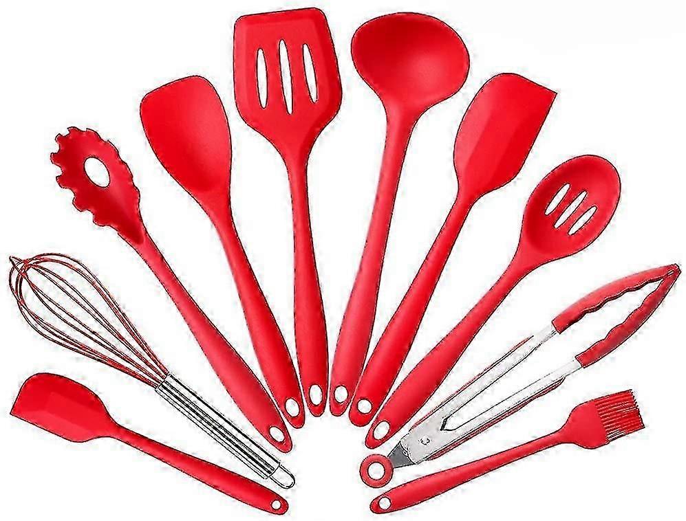 10-Piece Red Silicone Kitchen Utensil Set for Everyday Cooking Needs