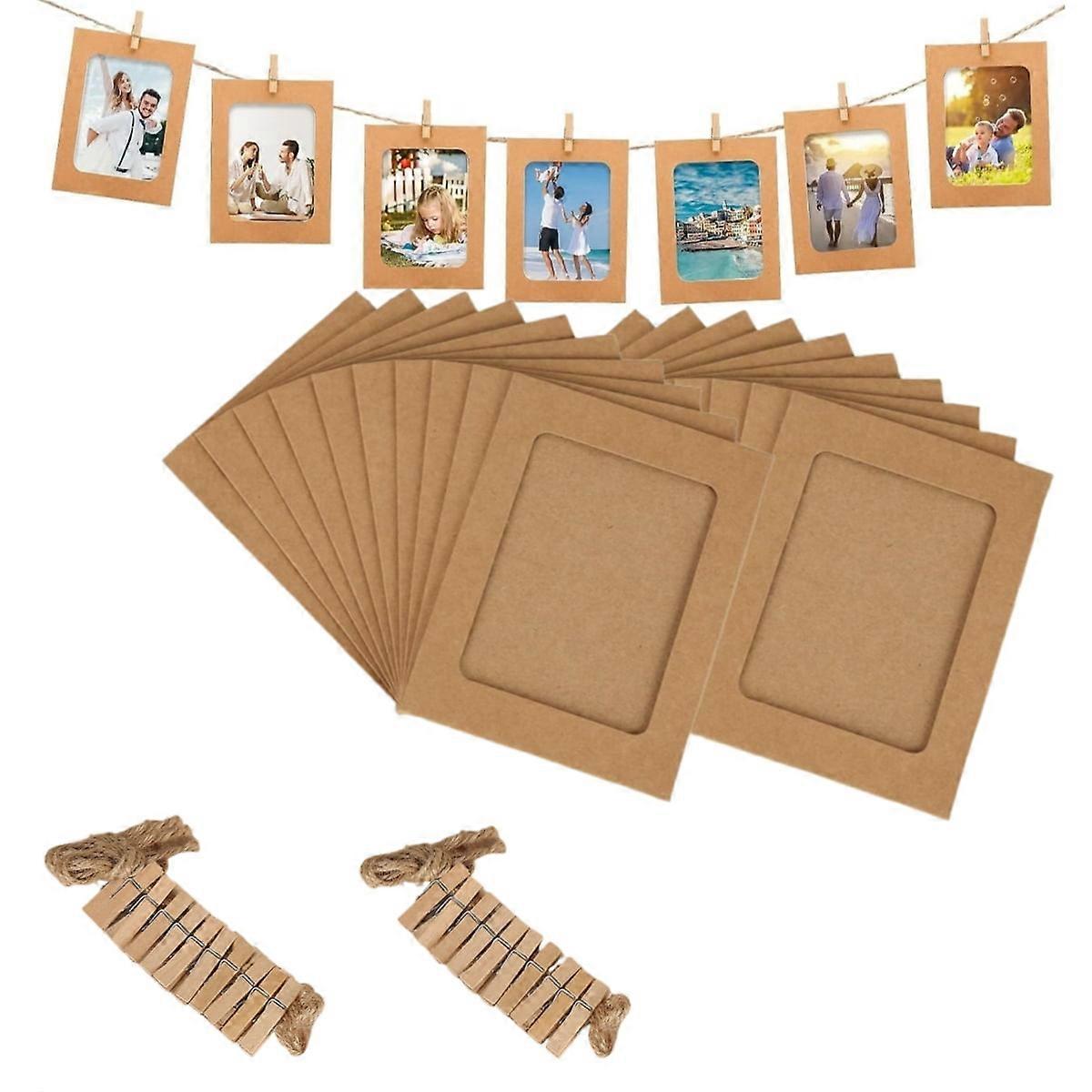 MODANU 20 Pcs Paper Photo Frames 4x6 inch Paper Picture Frames DIY Cardboard Photo Frames with Wood Clips and Jute Twine, Wood Color