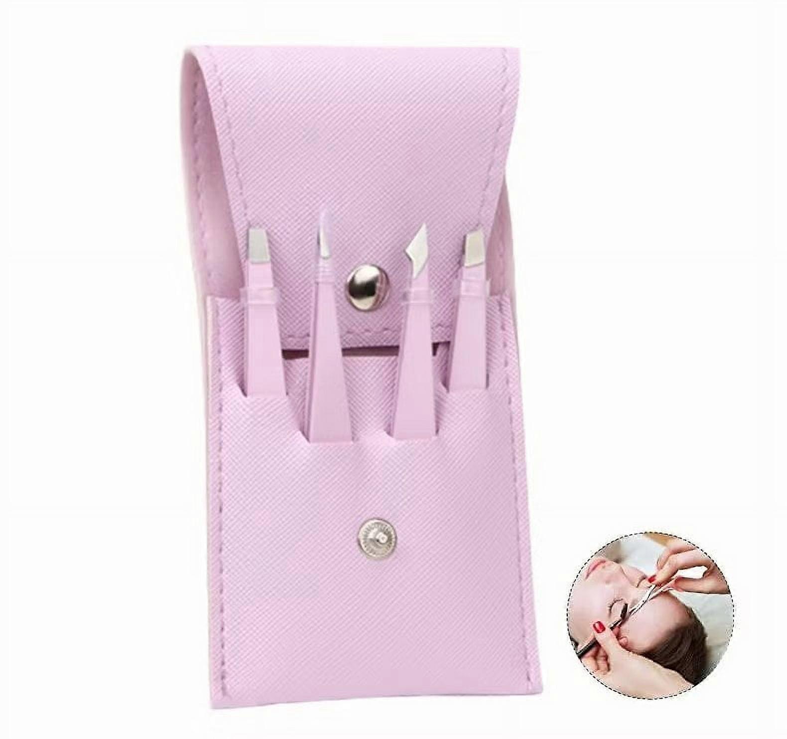 Tweezers Set 4 Pcs, Professional Precision for Eyebrows, Facial, Chin Hair, Splinter & Ingrown Hair Removal, Purple
