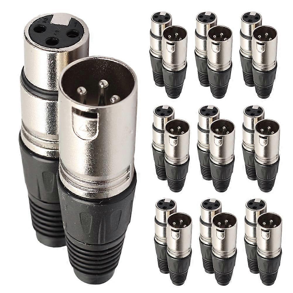 husxh 10Pair XLR 3Pin Female MIC Jack Plug Audio Microphone Cable Connector Black
