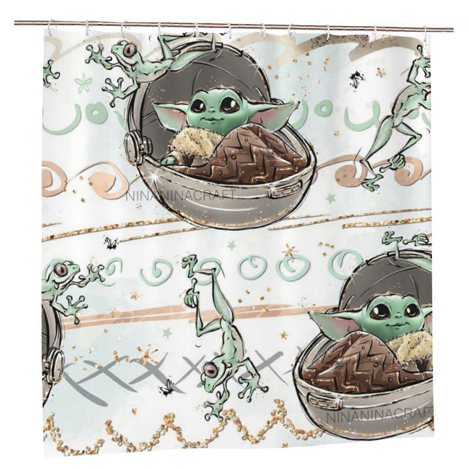 Baby Yoda Shower Curtain 72x72in Waterproof Mildew Resistant Blackout Privacy Patchwork Art Print One Size