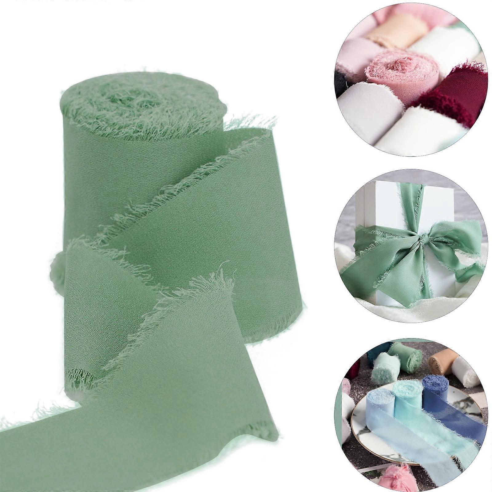Seewan 1 Roll Chiffon Silk Ribbon, 1.5"x5yd Fringe Fabric Eco-Friendly for Wedding Invitations, Bouquets, Decor, Gift Wrapping & Bows