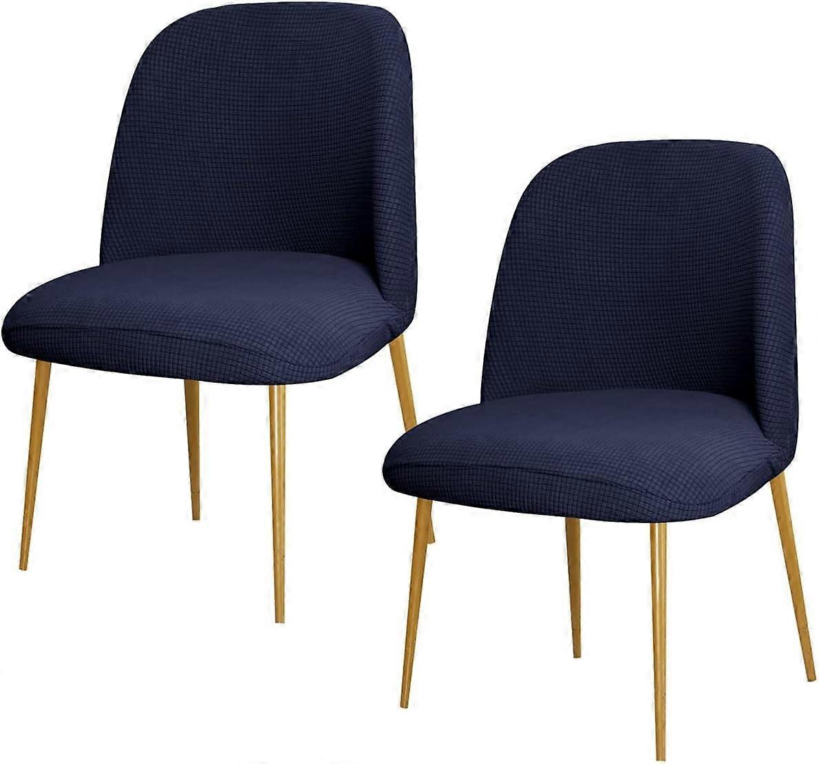 DEFNES 2 Pcs Soft Stretch Dining Chair Covers, Polyester Slipcovers for Armless Curved Back Chairs, Kitchen & Living Room Protector (Navy Blue)