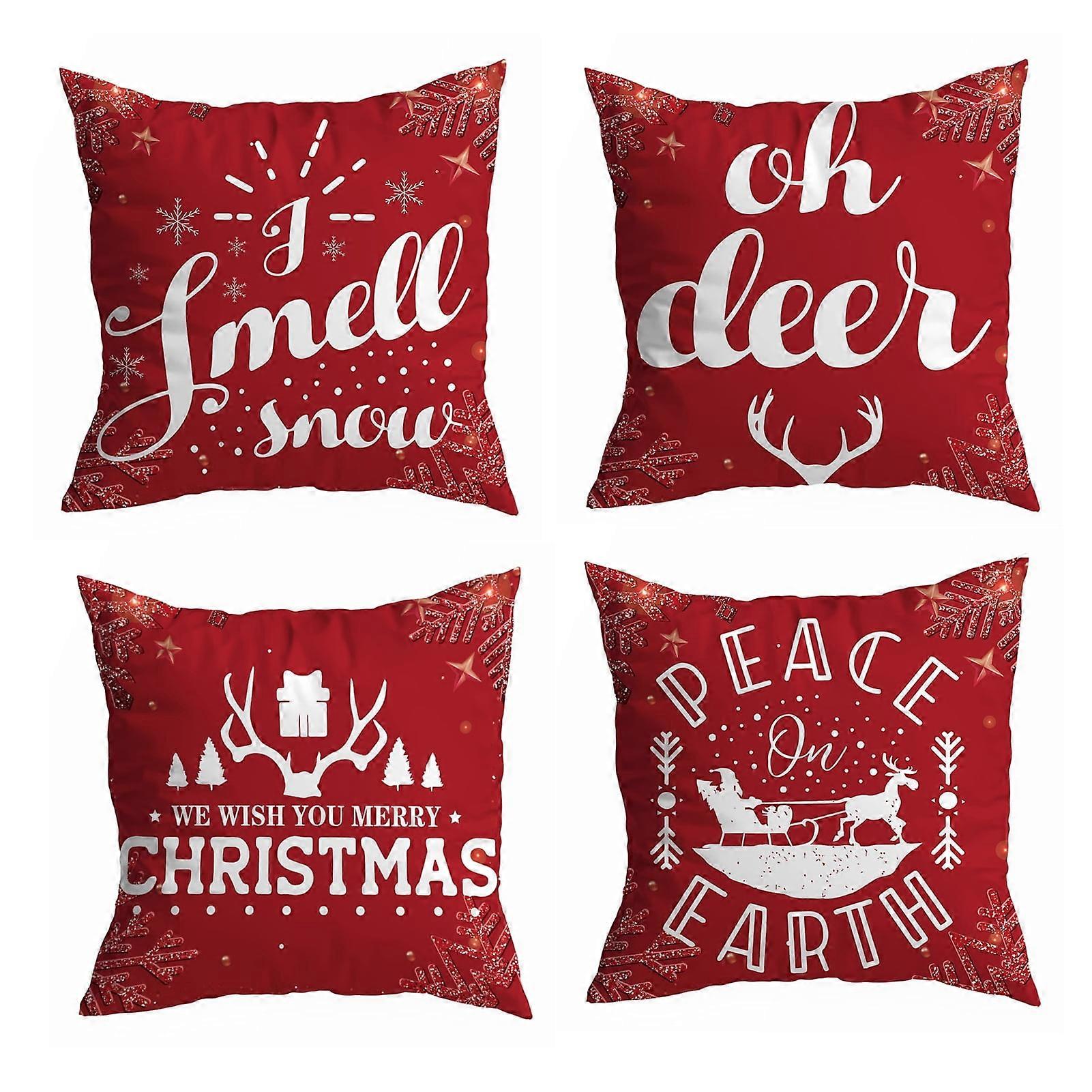 Bobasndm 4Pcs 18x18in Christmas Pillow Covers, Red Winter Theme Letter Print, Decorative Sofa Cushion Covers for Holiday Home Decor