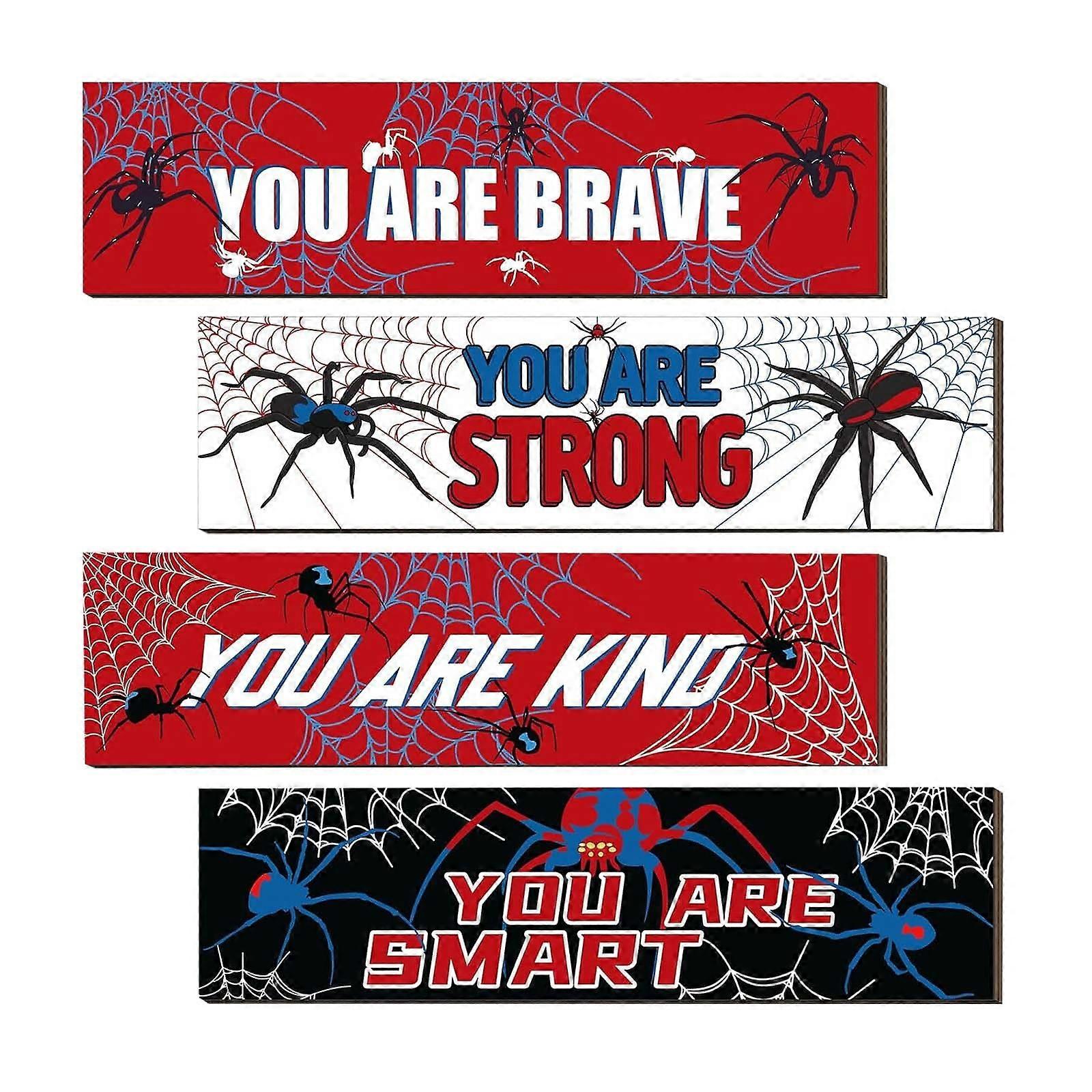 AQITTI 4Pcs Wooden Room Decor Set for Boys - Inspirational Theme Signs, Wall Art Prints for Kids Bedroom, Playroom, Game Room - Birthday Gift