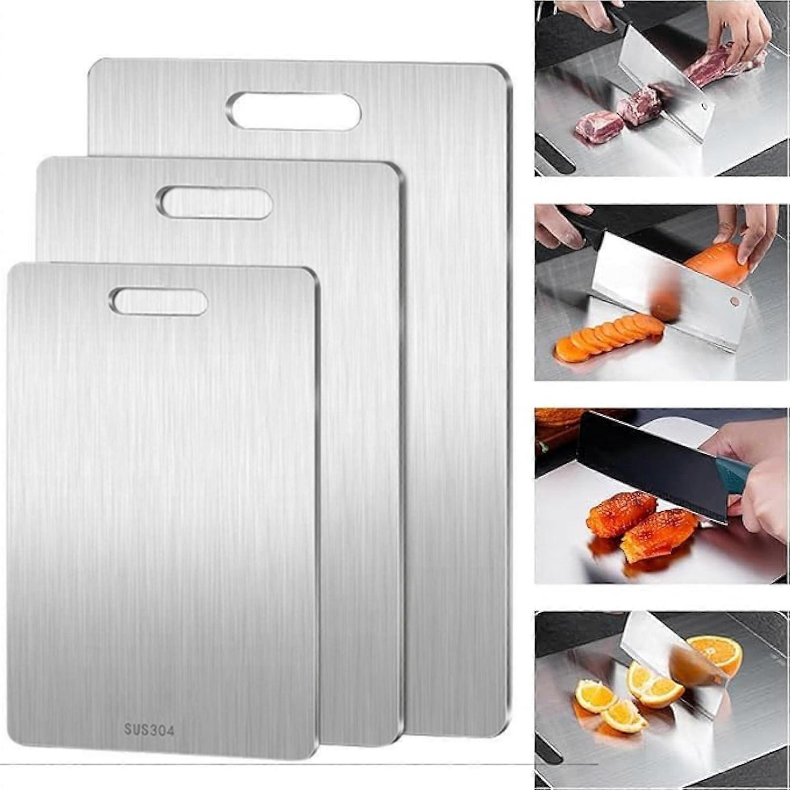 Bxaolu Double Sided Cutting Board, Stainless Steel for Meat, Veggies, Fruits, Easy Grip Handle, Dishwasher Safe