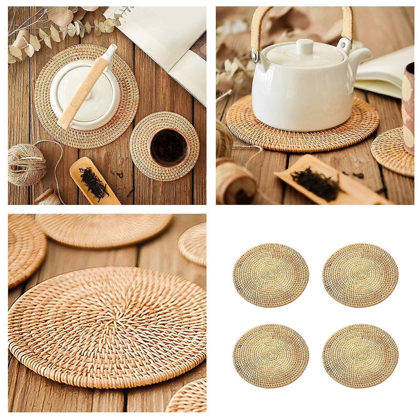GARENAS 4 PCS Rattan Trivets for Hot Dishes Insulated Hot Pads Durable Pot Holder for Table Heat Mats for Kitchen(Beige)