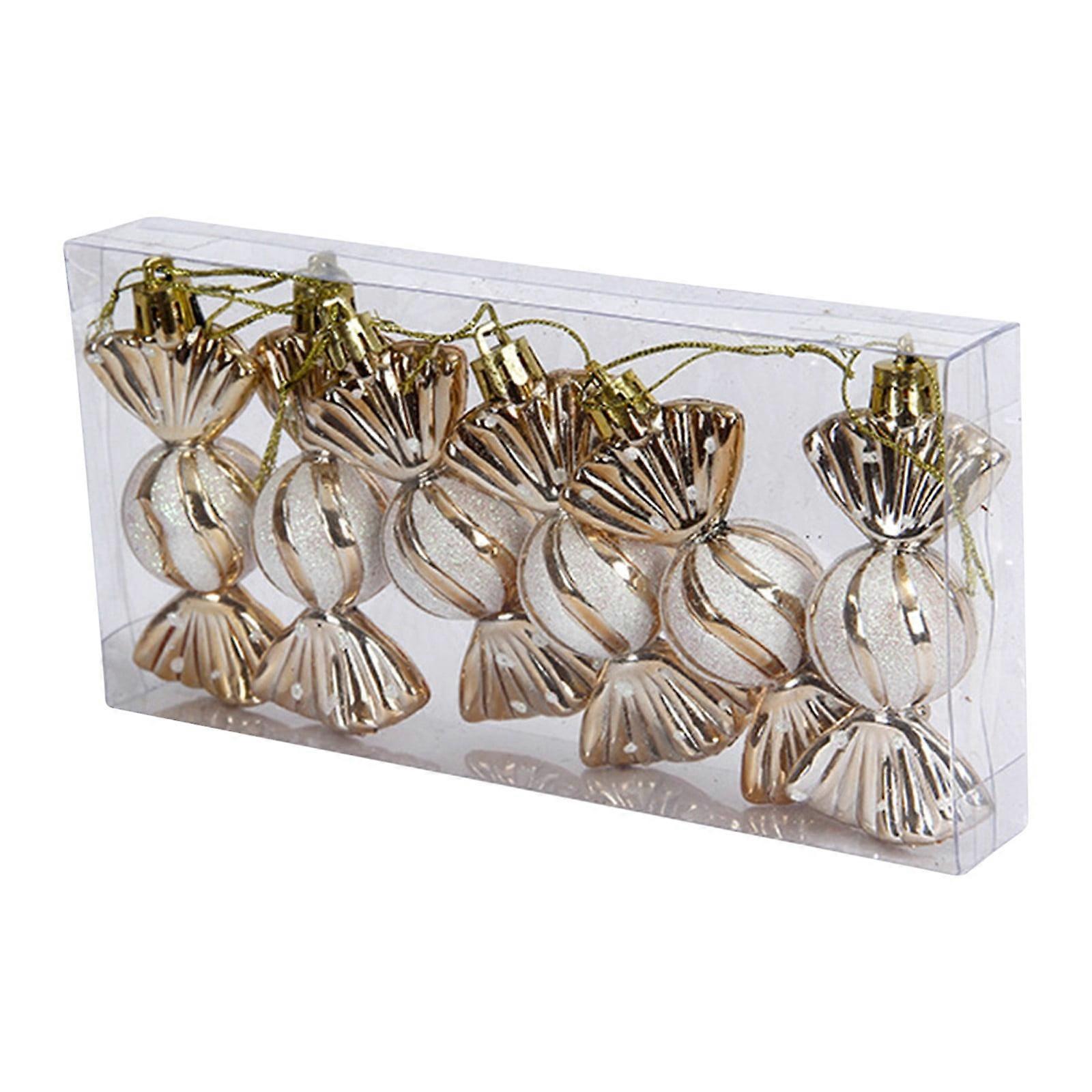 6Pcs Christmas Glitter Hanging Candy Ornaments, Colorful Xmas Candy Cane Decor, Shatterproof X'Mas Candies with Ropes for Tree, Home, Party