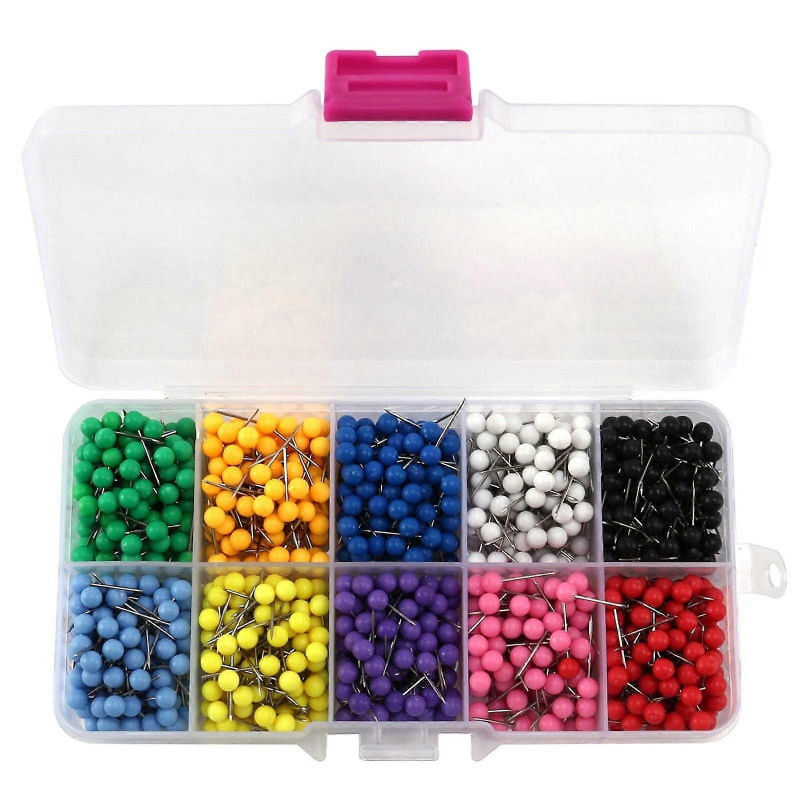 1000 Pcs Map Tacks Push Pins Plastic with Steel Point Cork,Board Colored Thumbtack Office School Supply