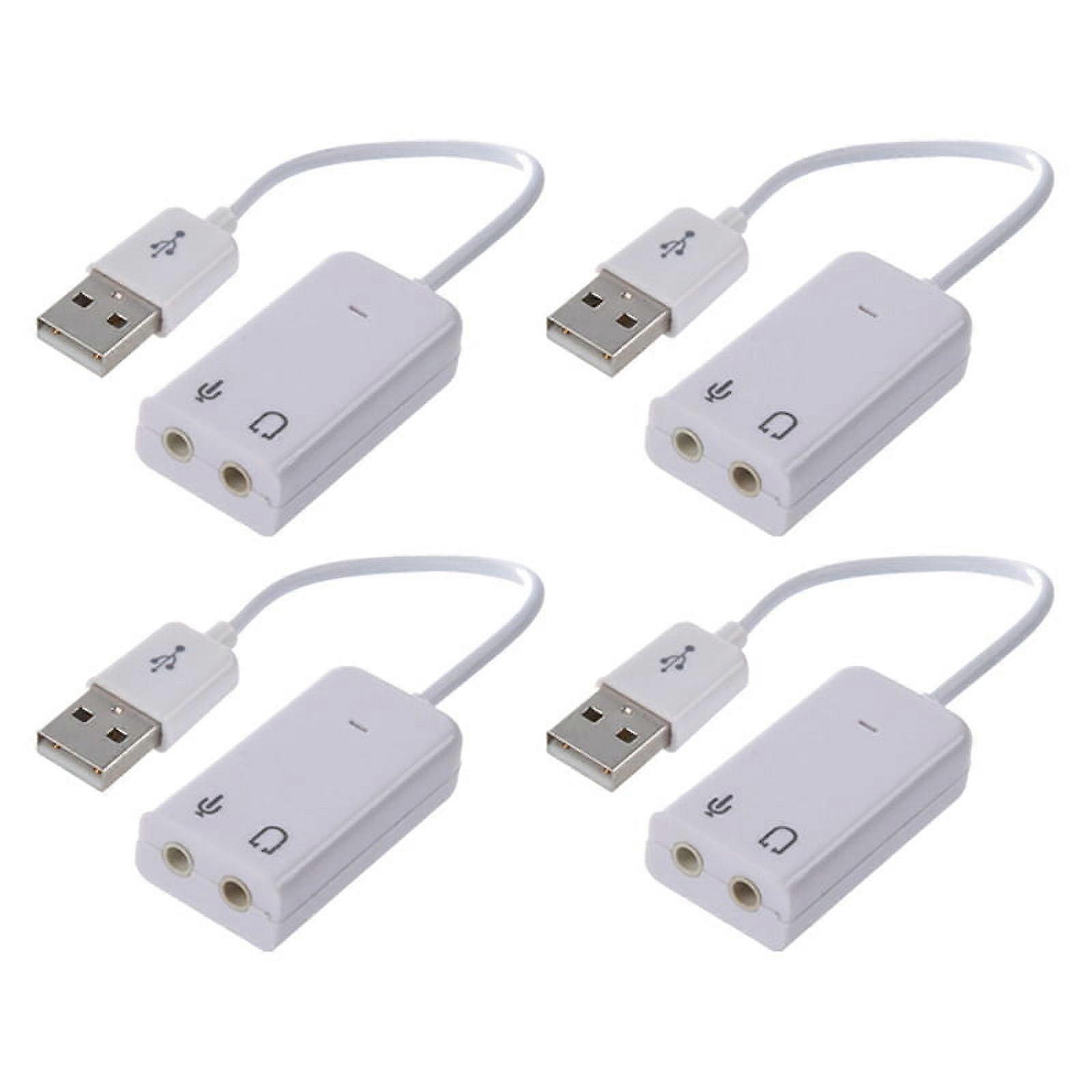 4pcs 3.5mm Microphone Earphone Socket USB 2.0 Sound Card Speaker Audio Adapter White