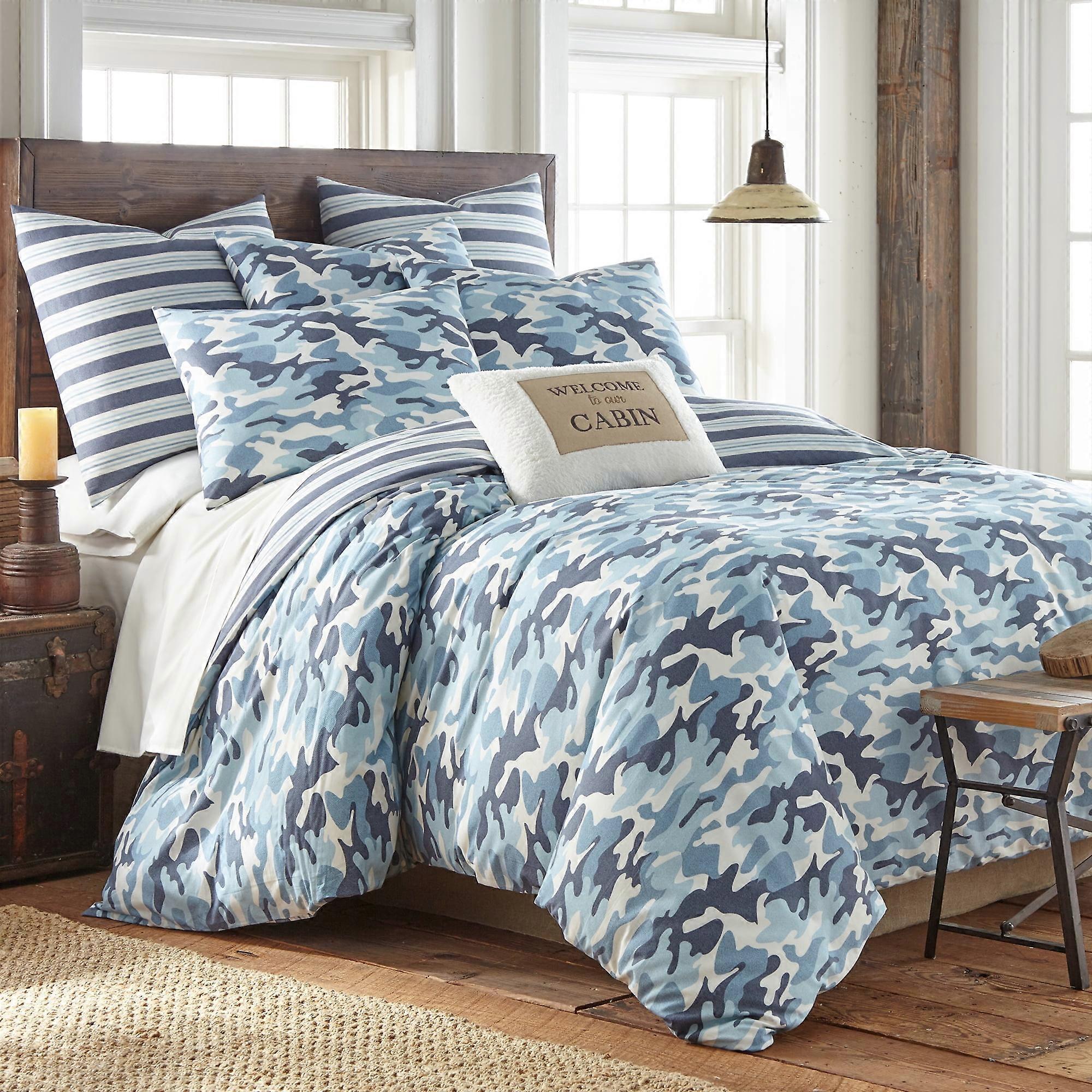 Levtex Home Camo Blue Duvet Cover Set, Full/Queen + 2 Pillow Cases, 92x96in, Cotton, Blue/Navy/Grey